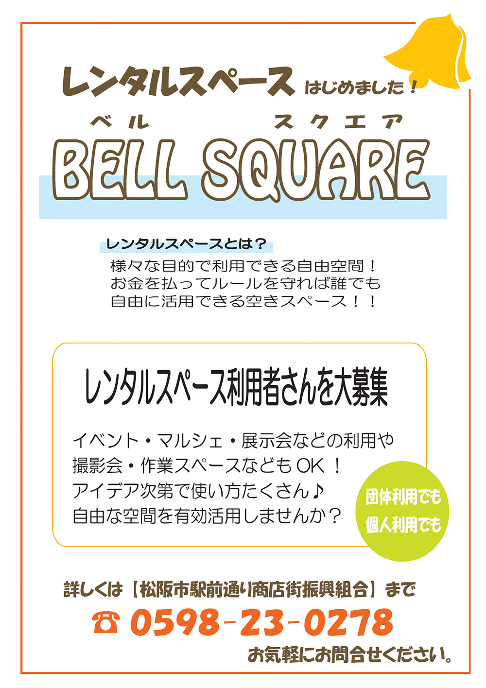 ベルタウンでは、さまざまな目的で利用できるレンタルスペースの貸し出しをしております。